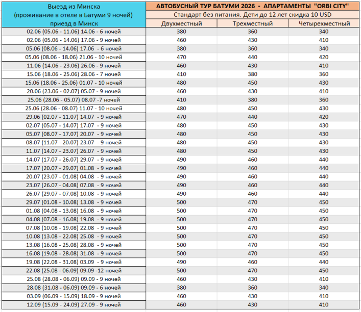 - Детям до 1.99 без питания и без предоставления места в отеле оплачивается только посадочный талон на самолет 80 USD