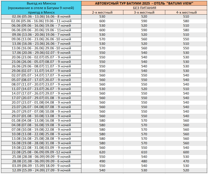 - Авиаперелёт Минск-Батуми/Кутаиси-Минск (багаж 23 кг. + 10 кг. ручная кладь на каждого туриста);