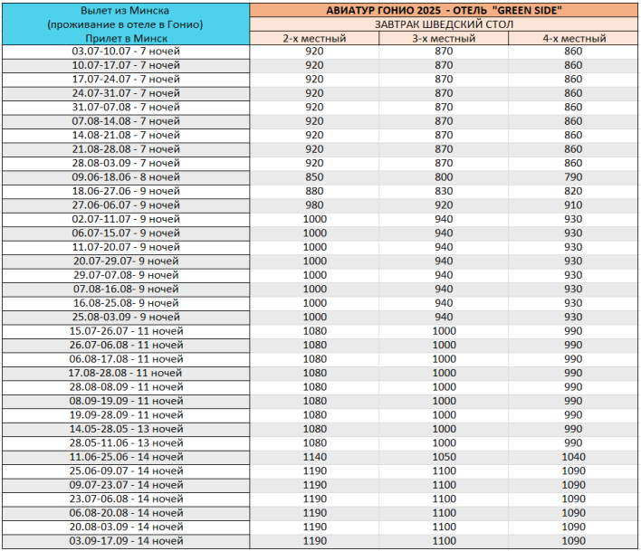 - 7-14 ночей в выбранном отеле;