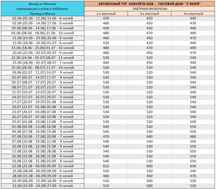 - Дополнительные экскурсии на курорте (по желанию);
