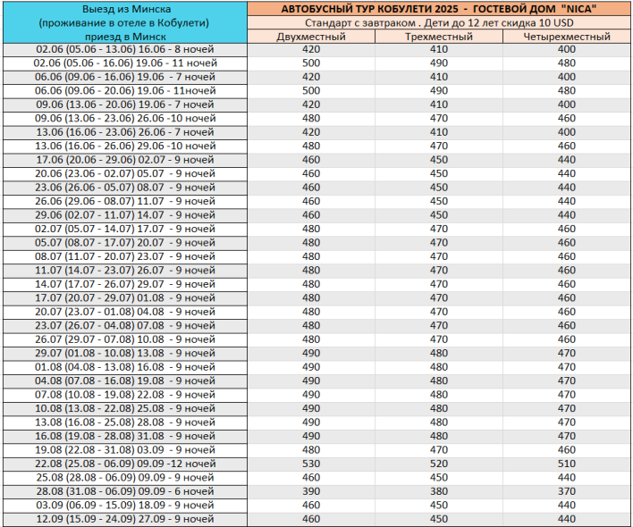 - За 30 дней до начала тура оплачивается 300 USD на человека по курсу, установленному НБРБ+3% на день оплаты.